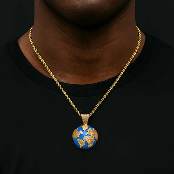 World Map Pendant Iced Out